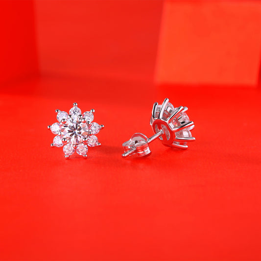 Snowflake Moissanite Stud Earrings 925 Sterling Silver