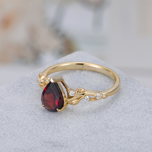 Natural Garnet Pear With Moissanite 925 Sterling Silver Ring