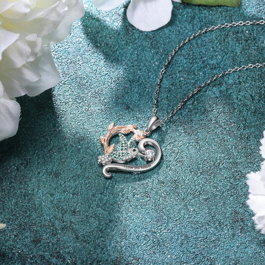 Heart, Rose and Bird Necklase 2 Tone 925 Sterling Silver