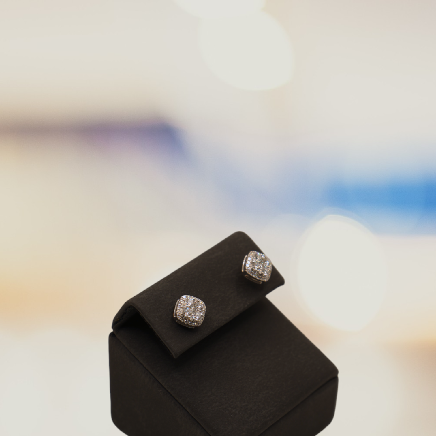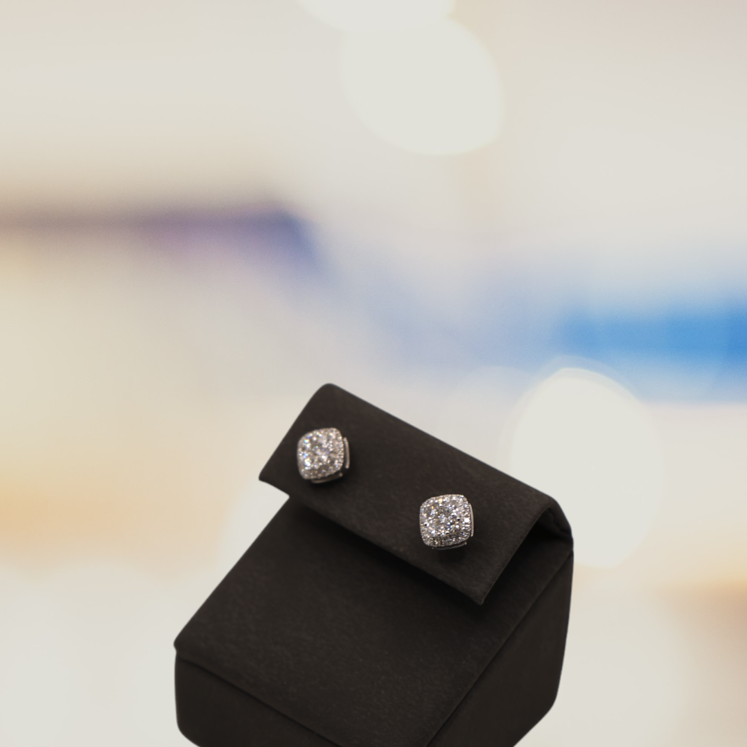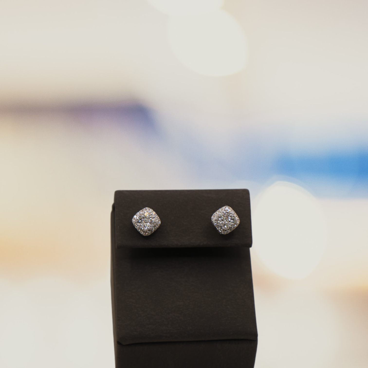 0.58 Carat Square Cut Natural Diamond Earrings in 18K White Gold