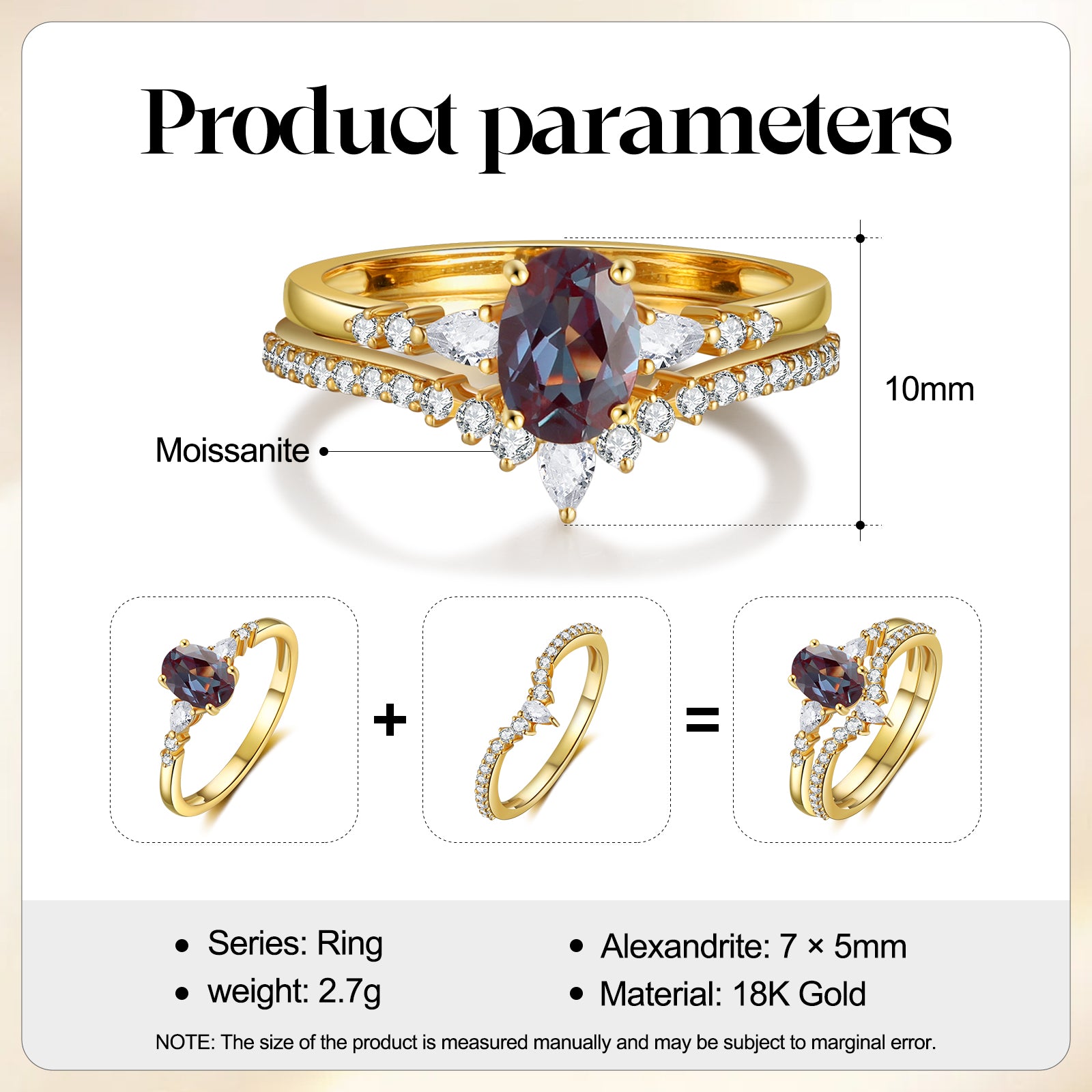 18K Gold Alexandrite With Moissanite Two Rings Set (14K Available)