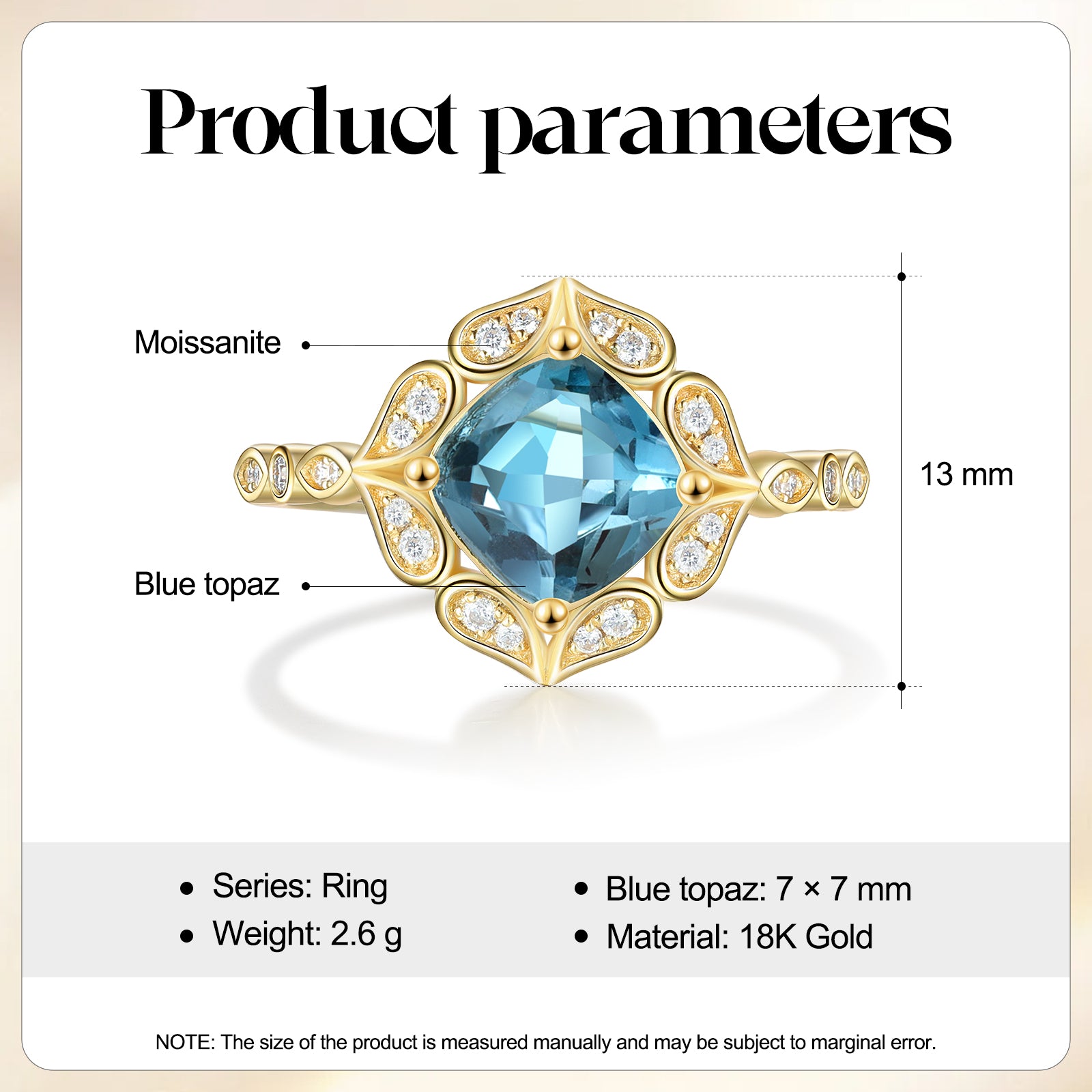 18K Gold Natural Blue Topaz With Moissanite Ring