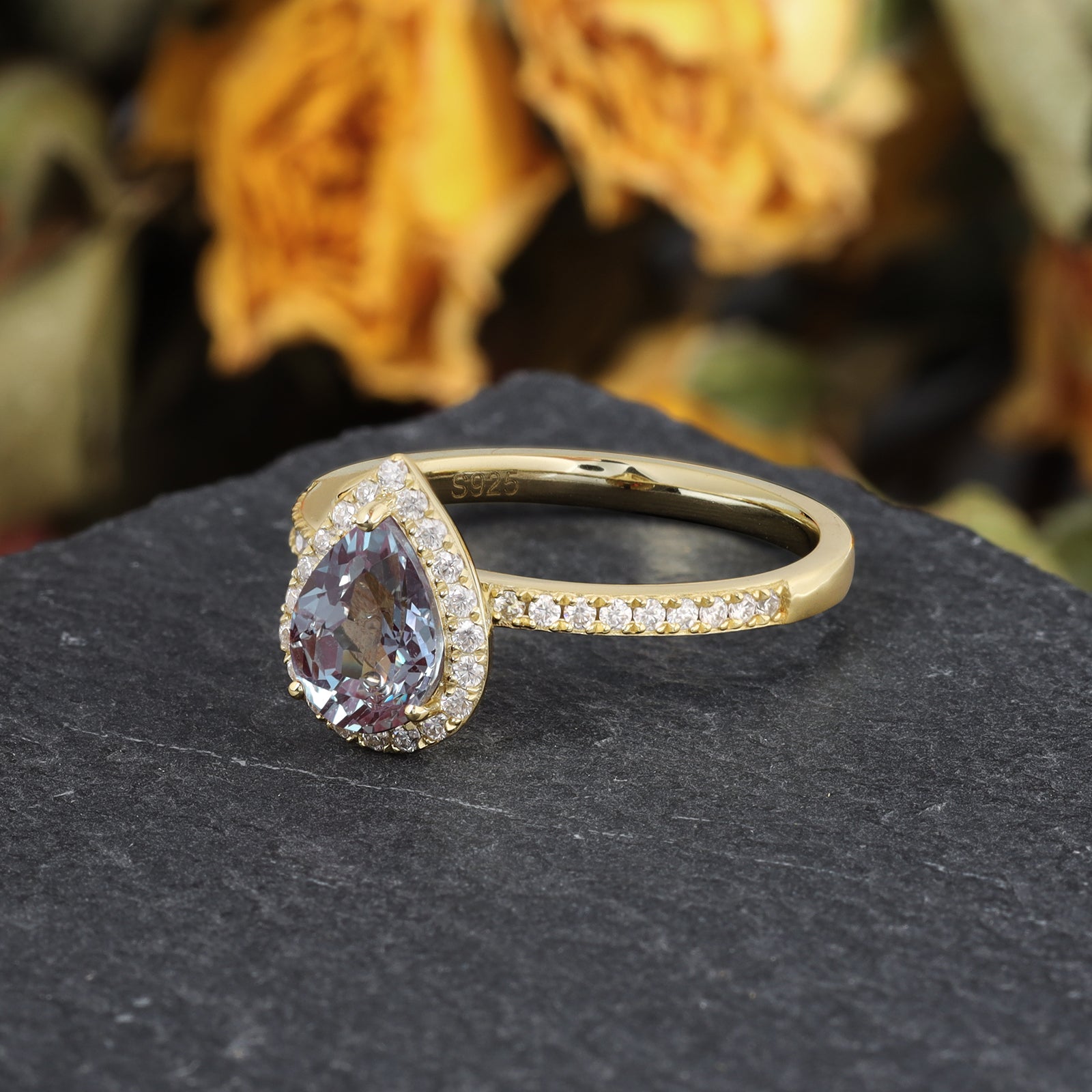 Alexandrite Pear Shaped With Moissanite, 925 Sterling Silver Ring