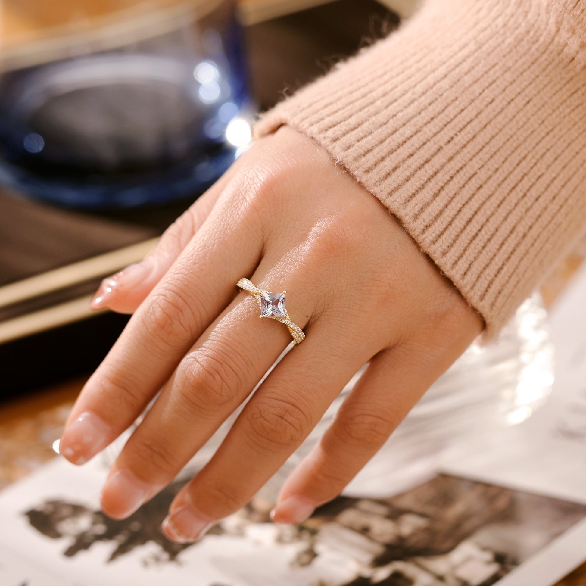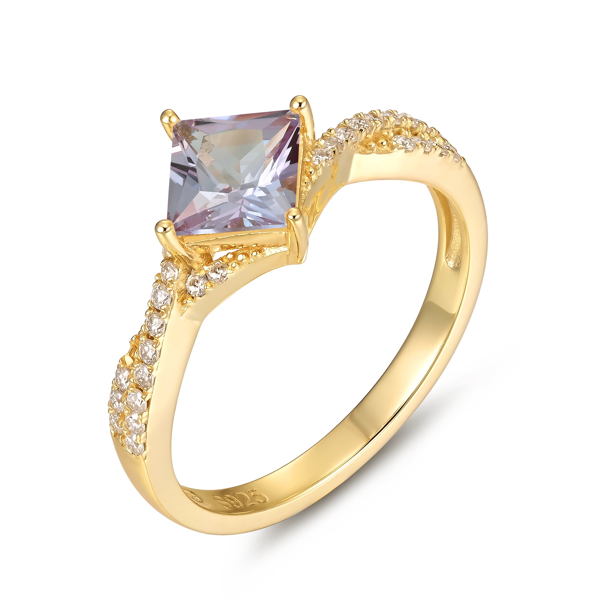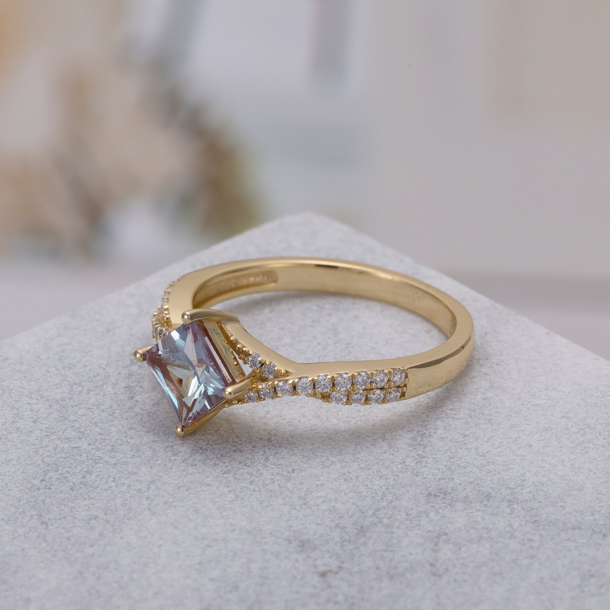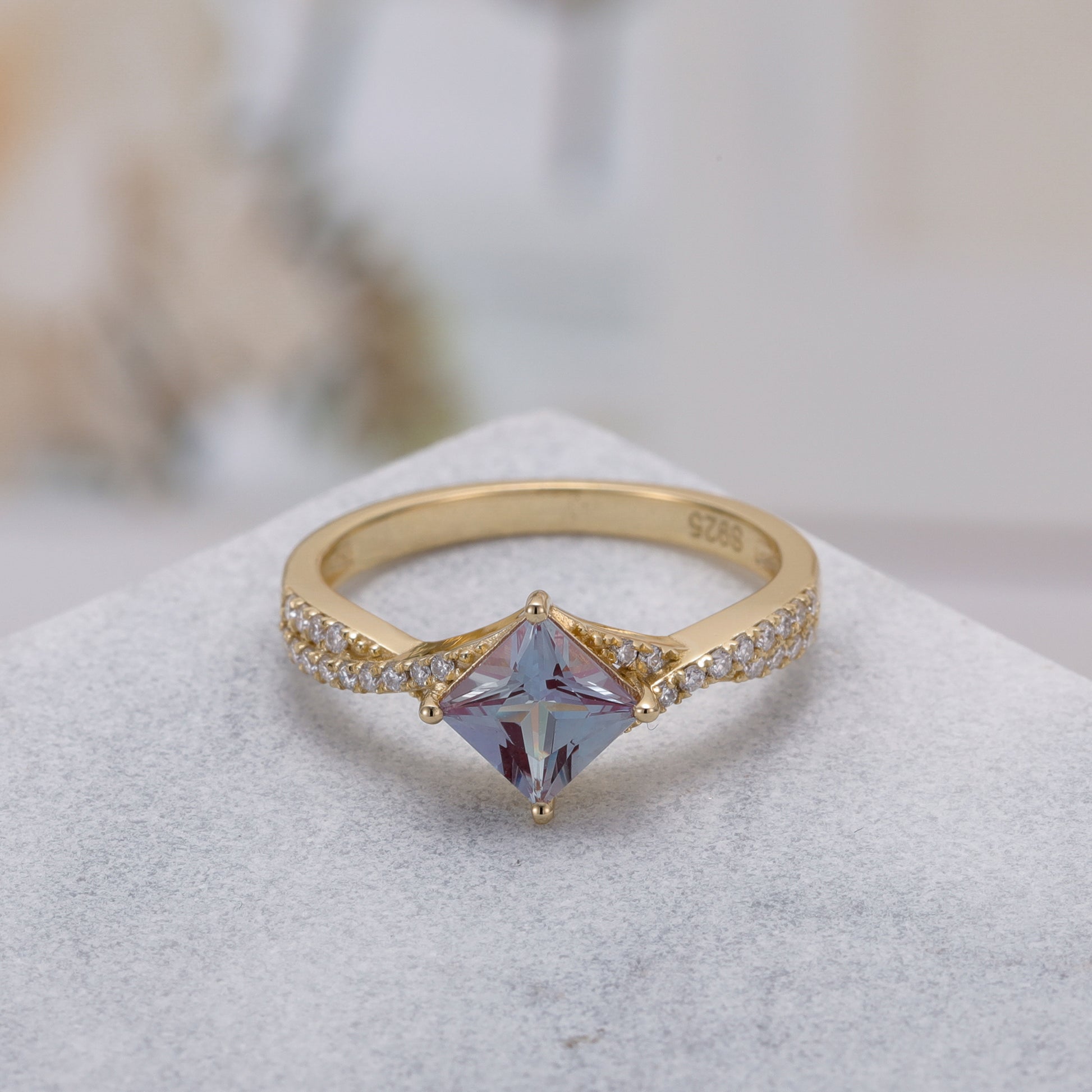 Alexandrite Princess Shape With Moissanite, 925 Sterling Silver Ring