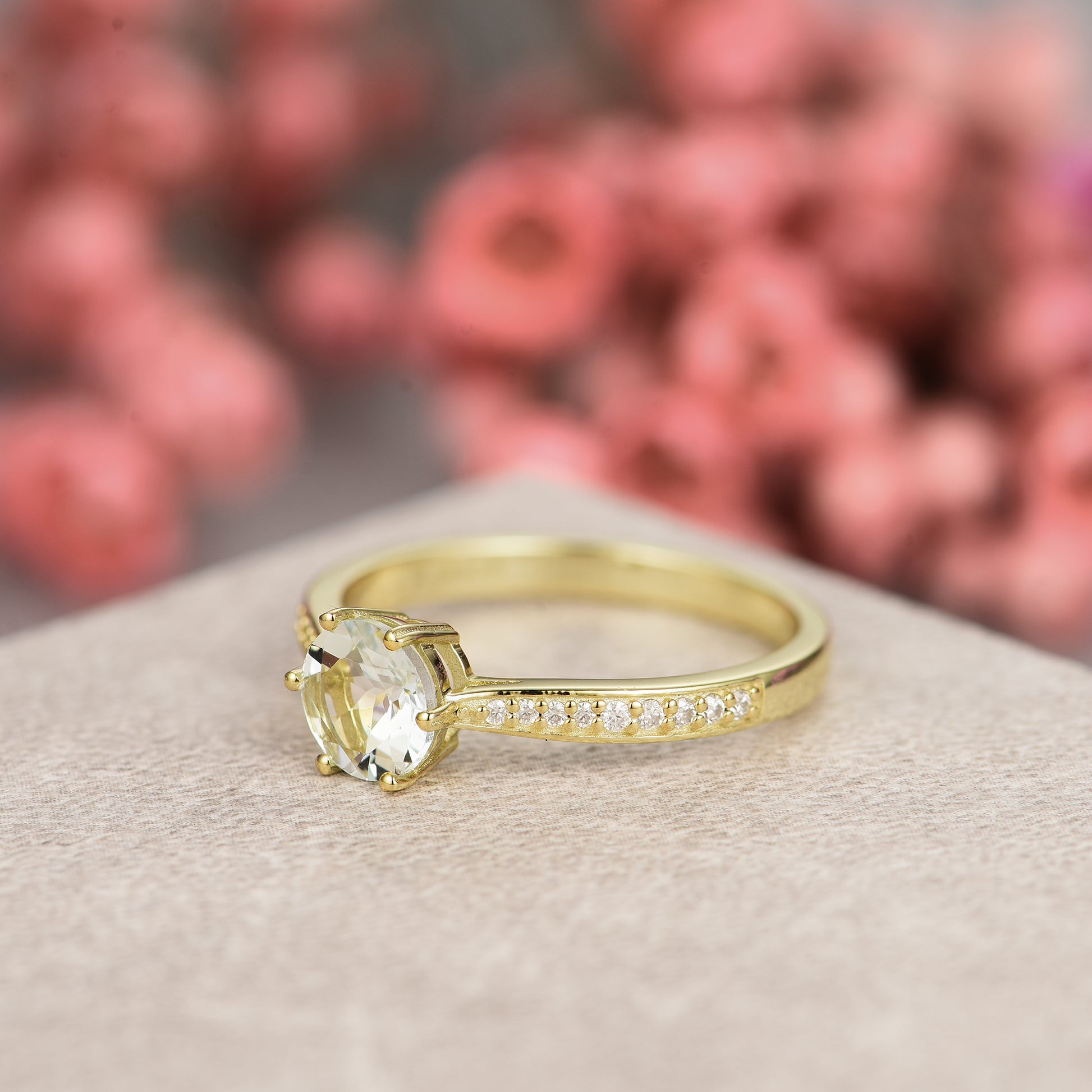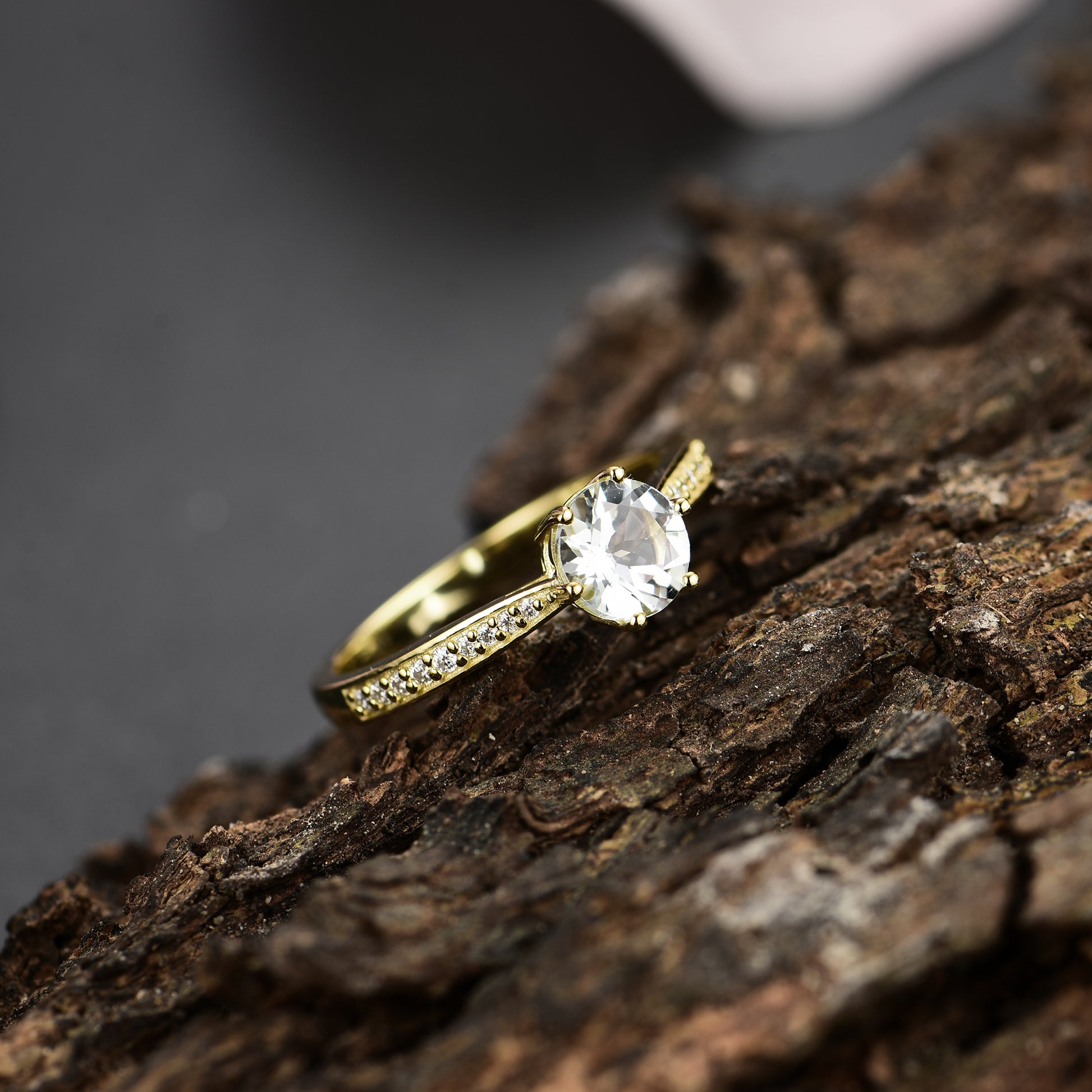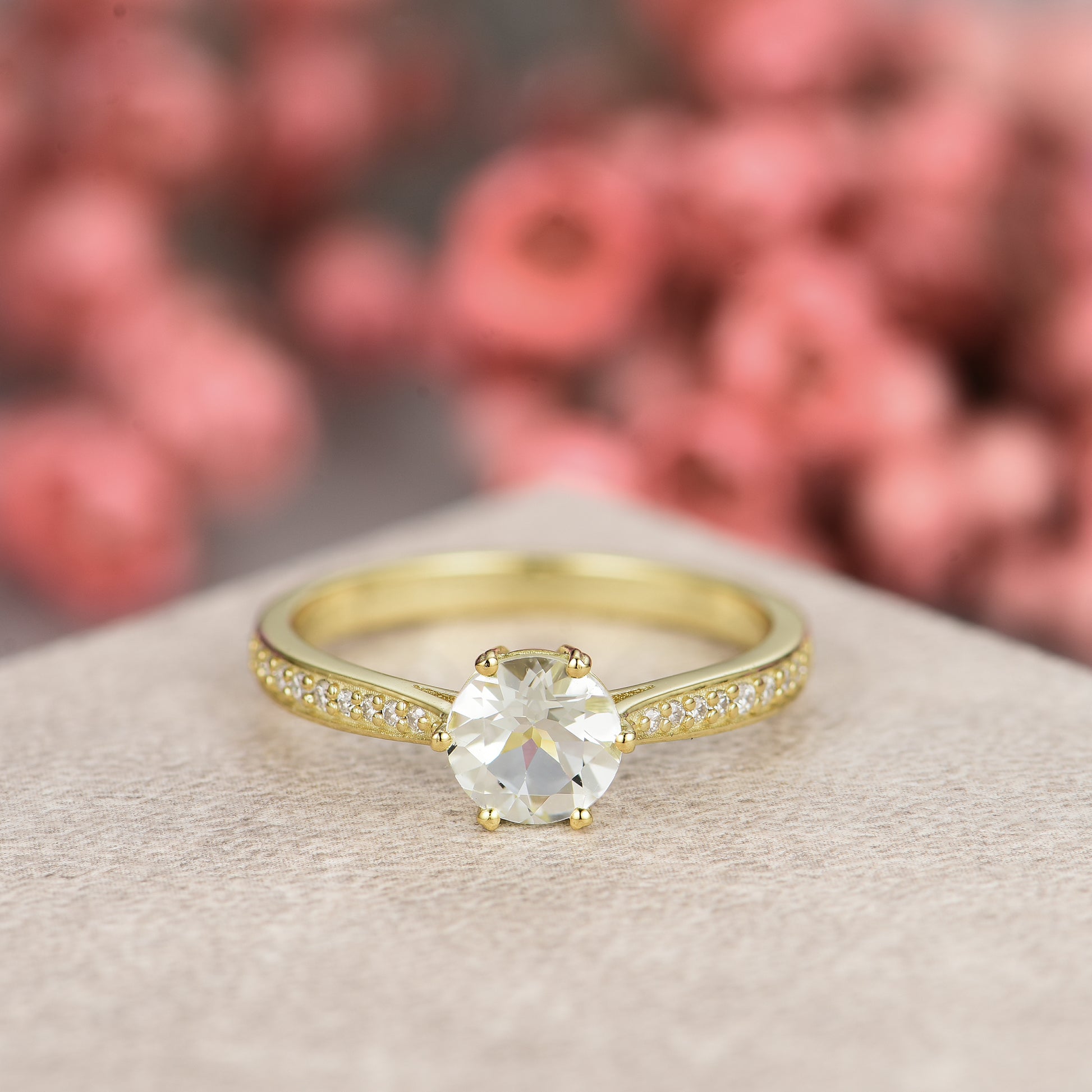 Natural Sapphire Round With Moissanite 925 Sterling Silver Ring