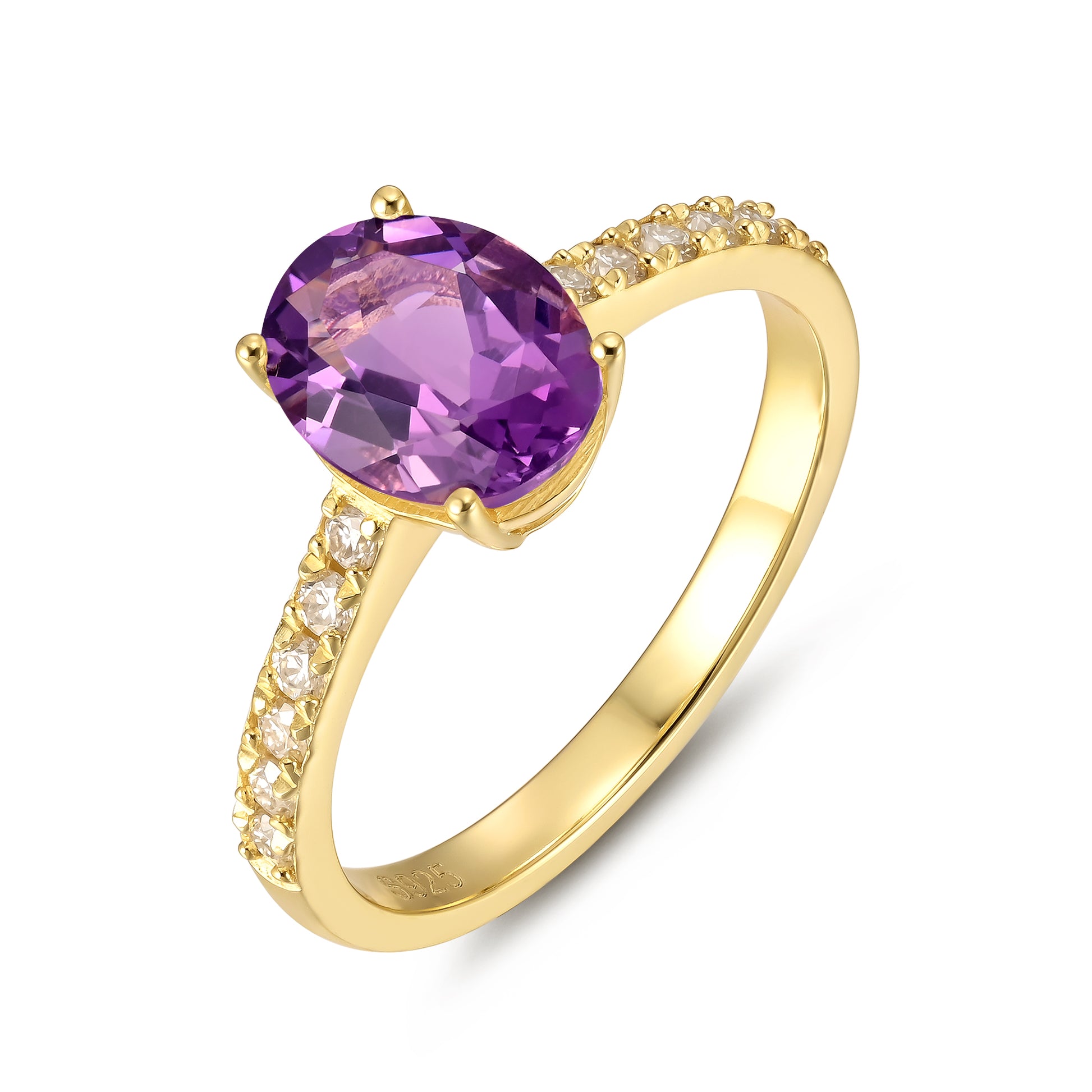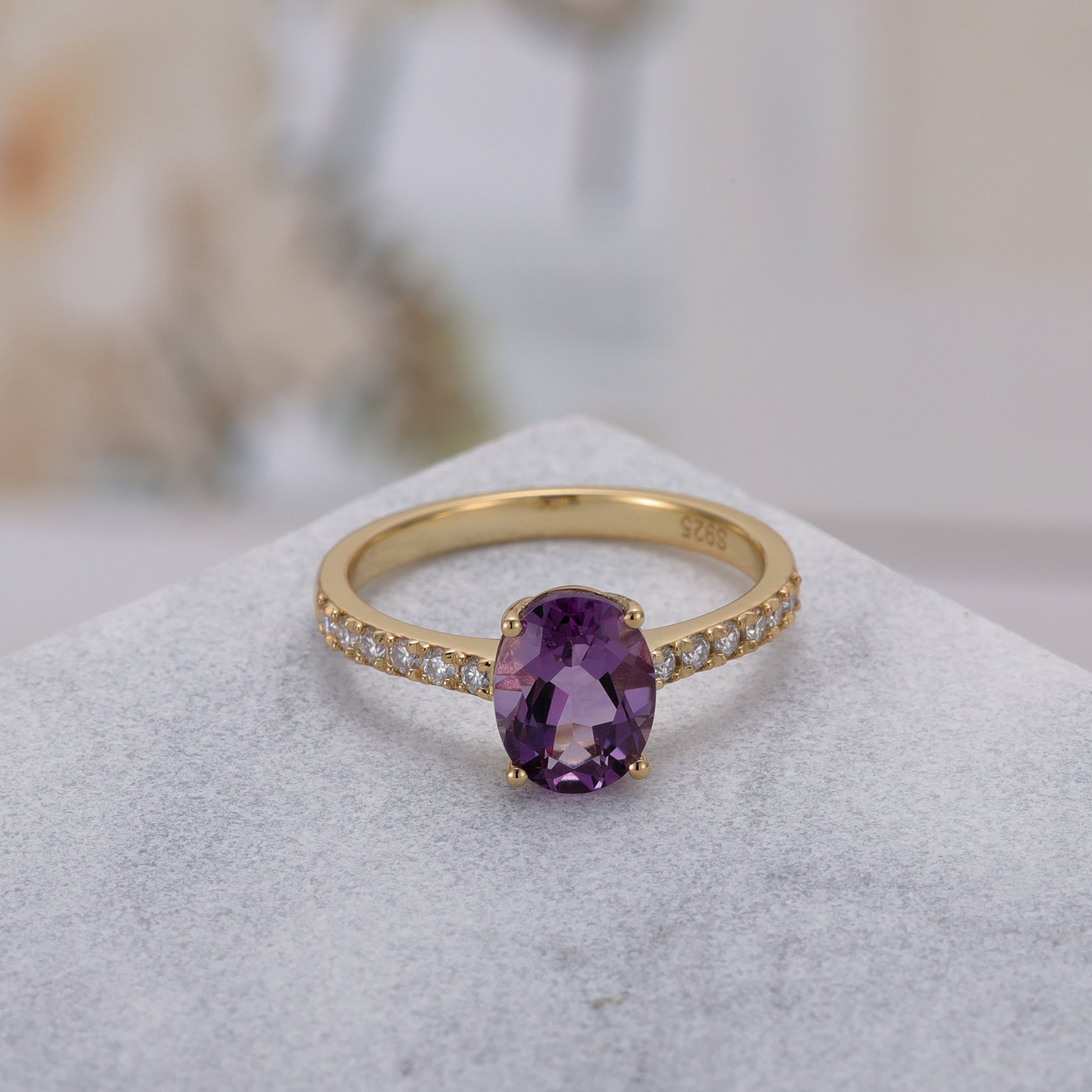 Natural Amethyst Oval With Moissanite 925 Sterling Silver Ring