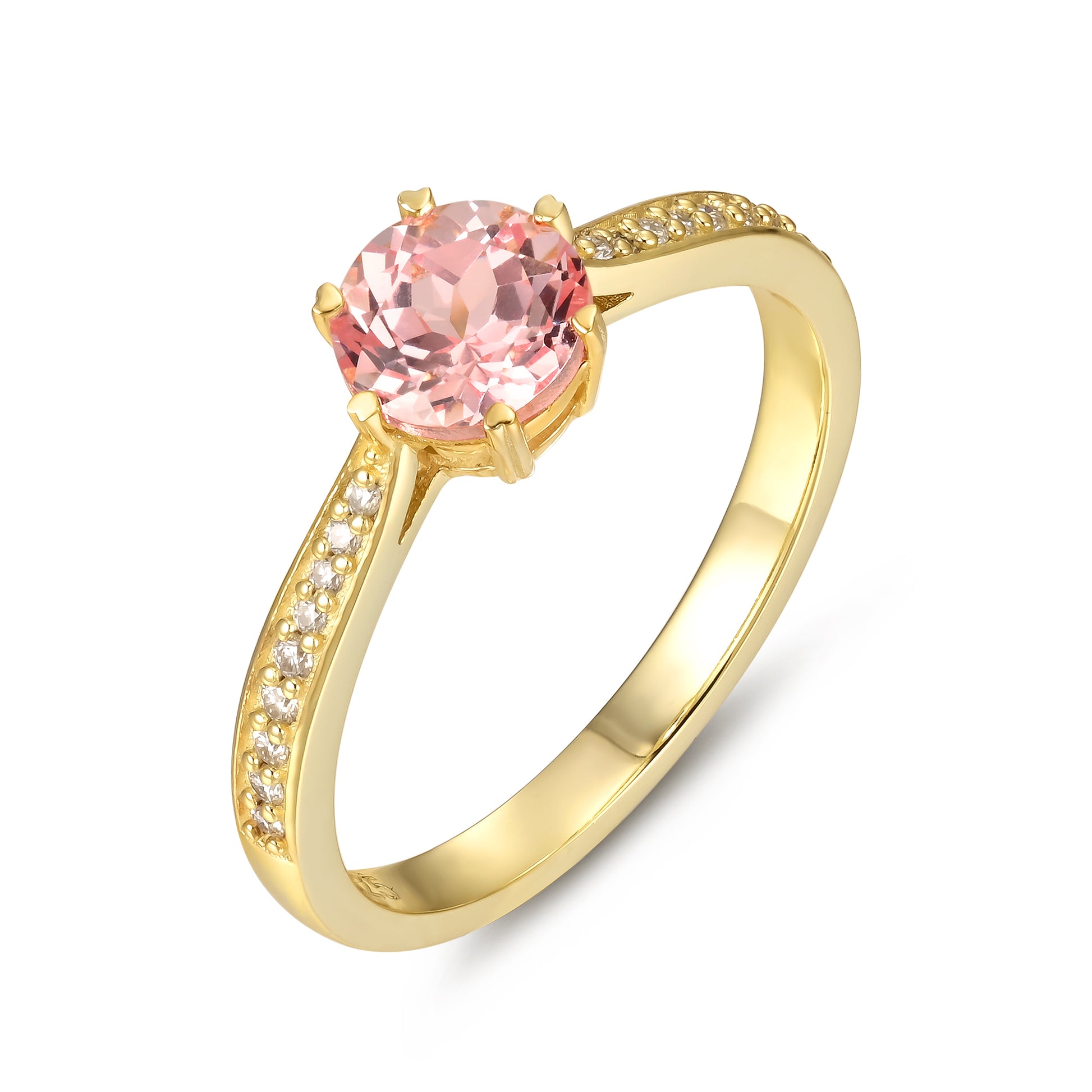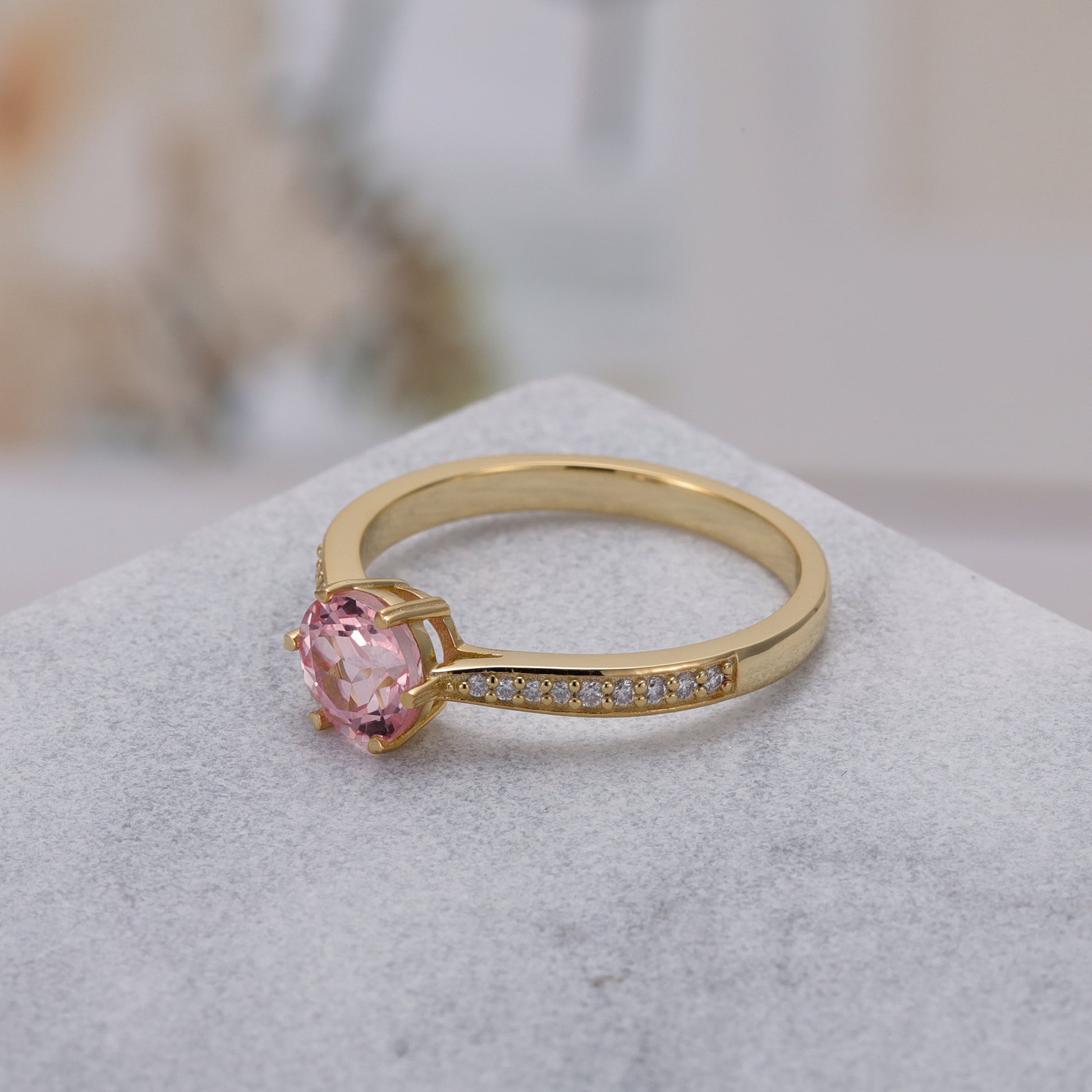 Pink Sapphire Round Shaped With Moissanite, 925 Sterling Silver Ring