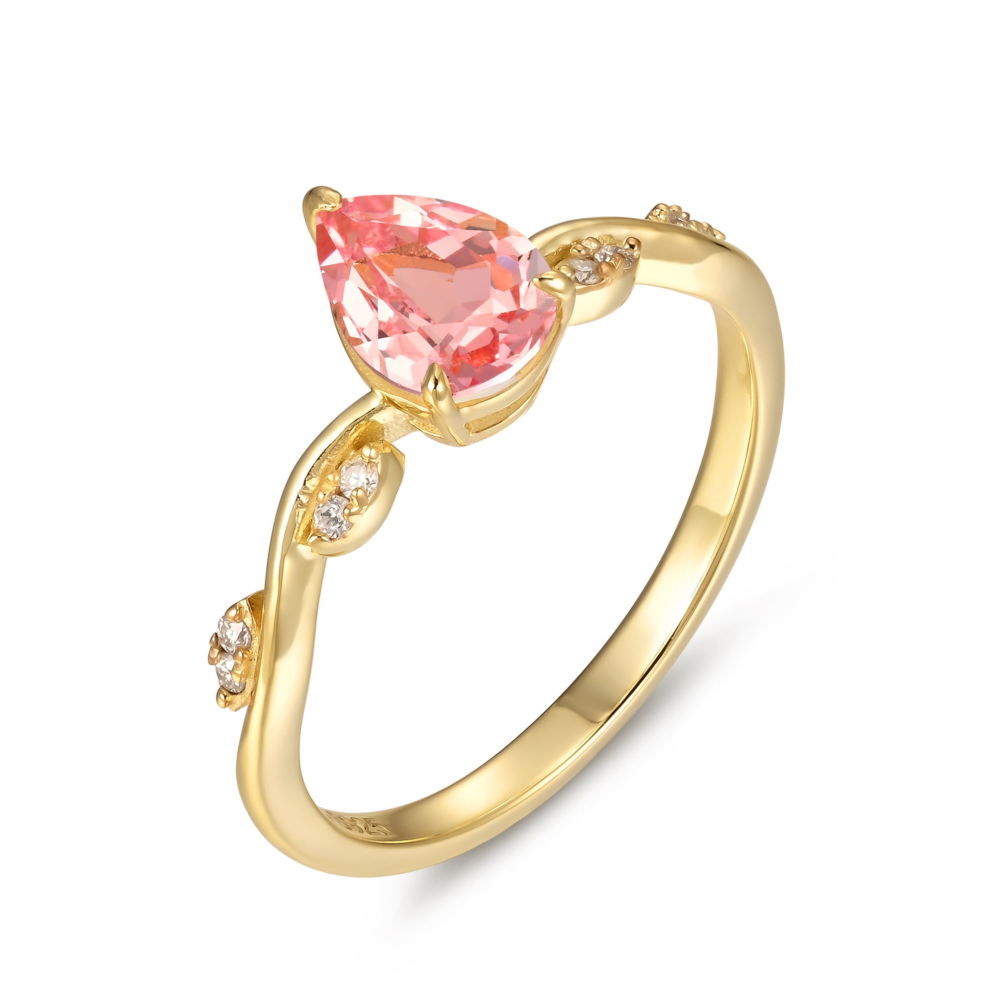 Pink Sapphire Pear Shaped With Moissanite, 925 Sterling Silver Ring