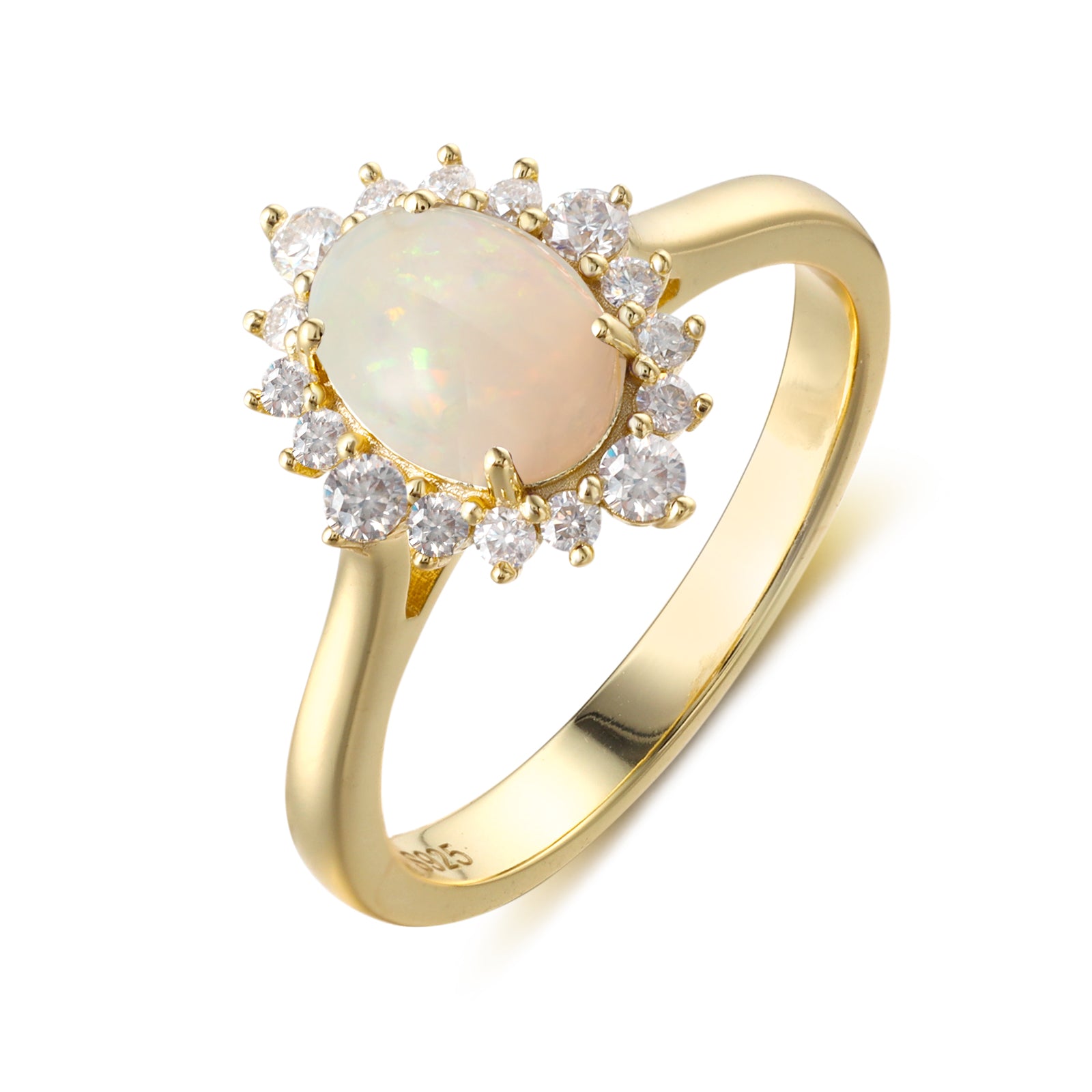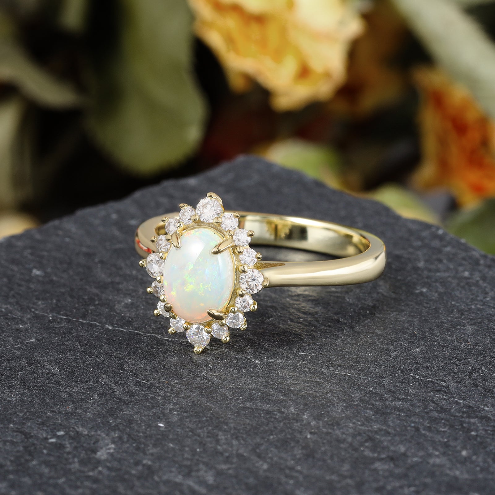 Natural Opal Flower With Moissanite 925 Sterling Silver Ring