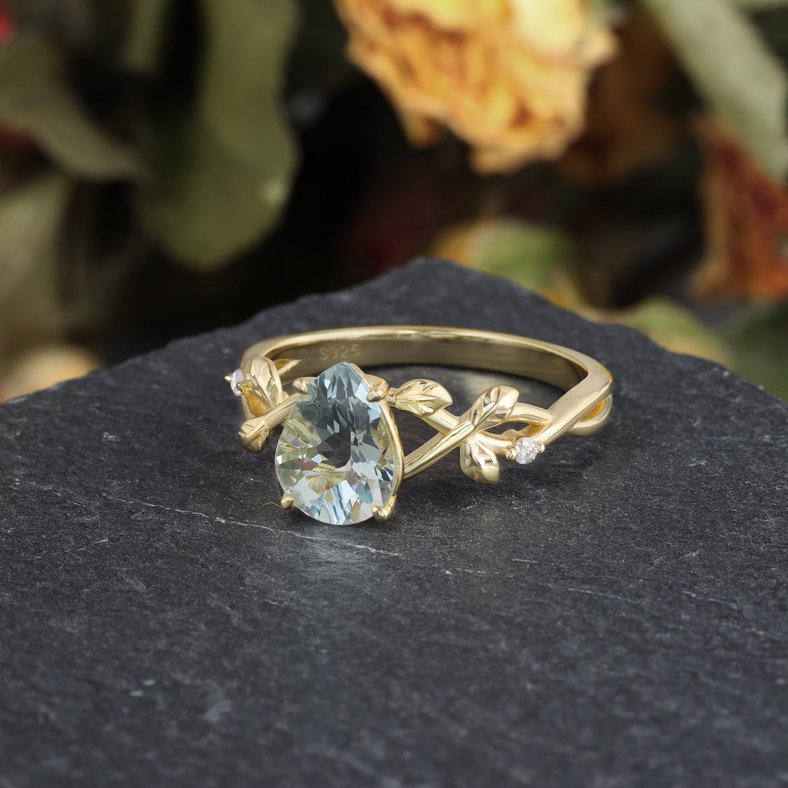 Natural Sapphire Pear Shaped With Moissanite, 925 Sterling Silver Ring