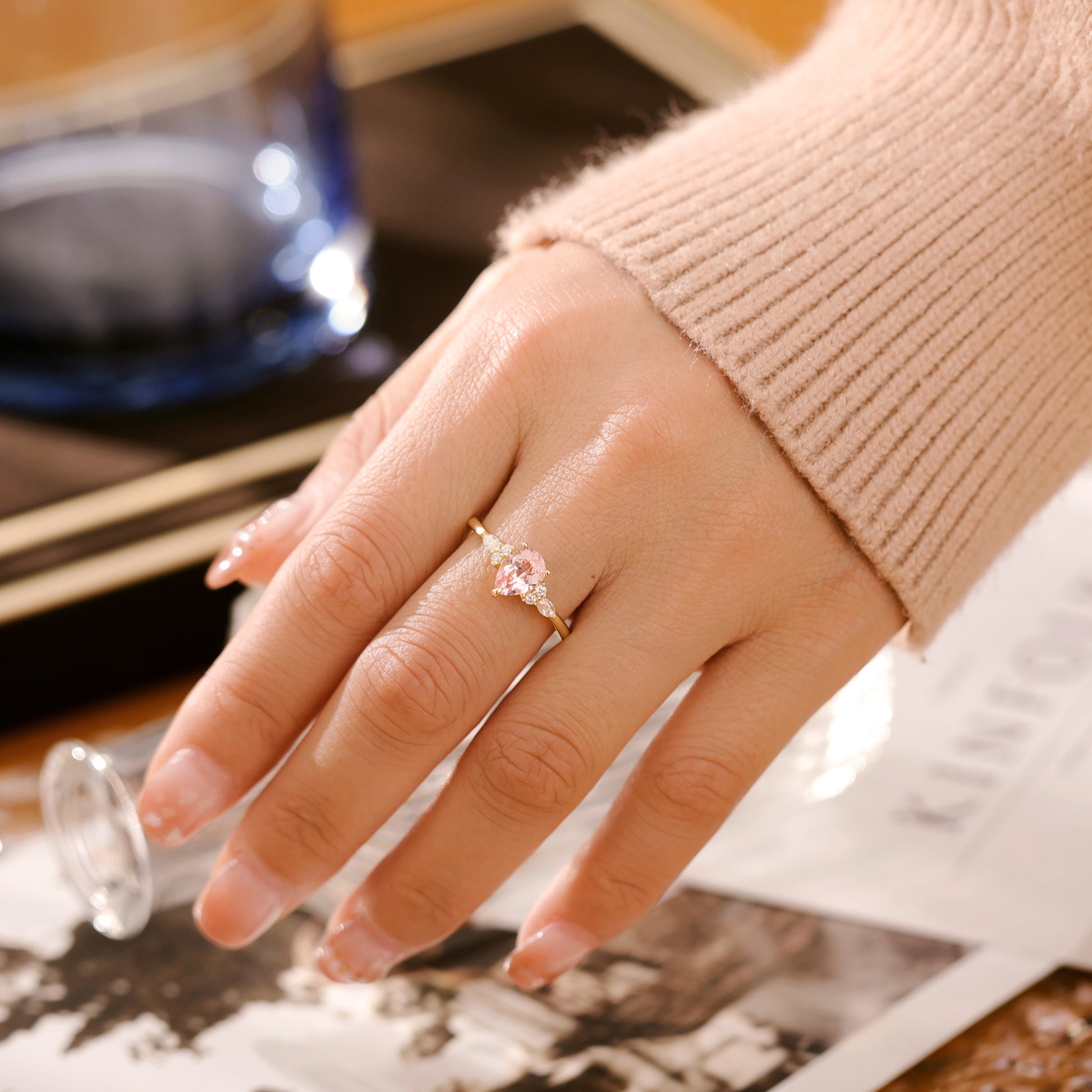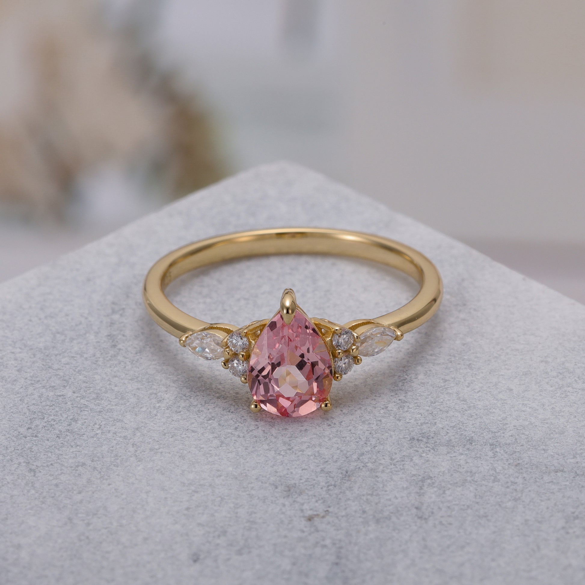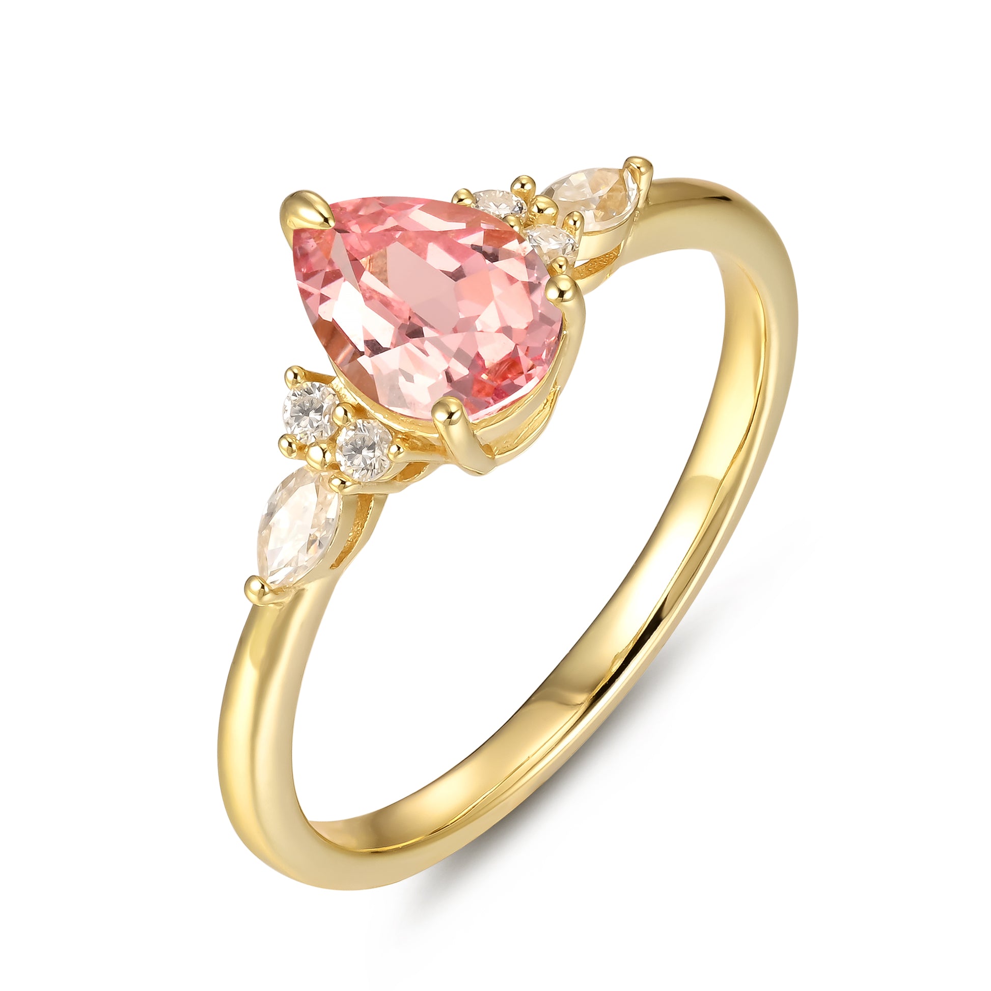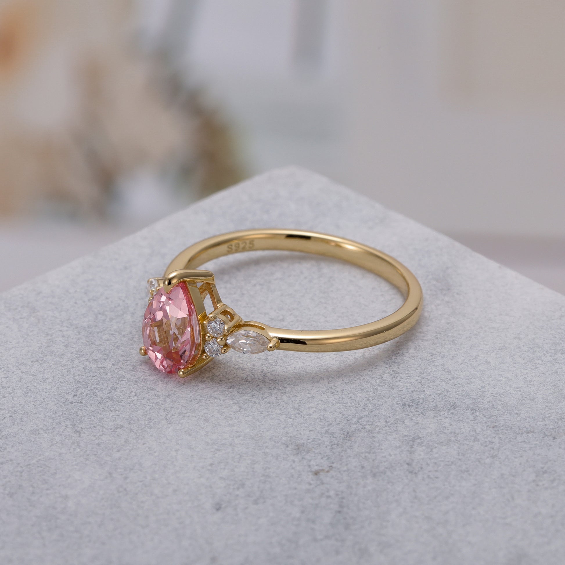 Pink Sapphire Pear With Moissanite 925 Sterling Silver Ring