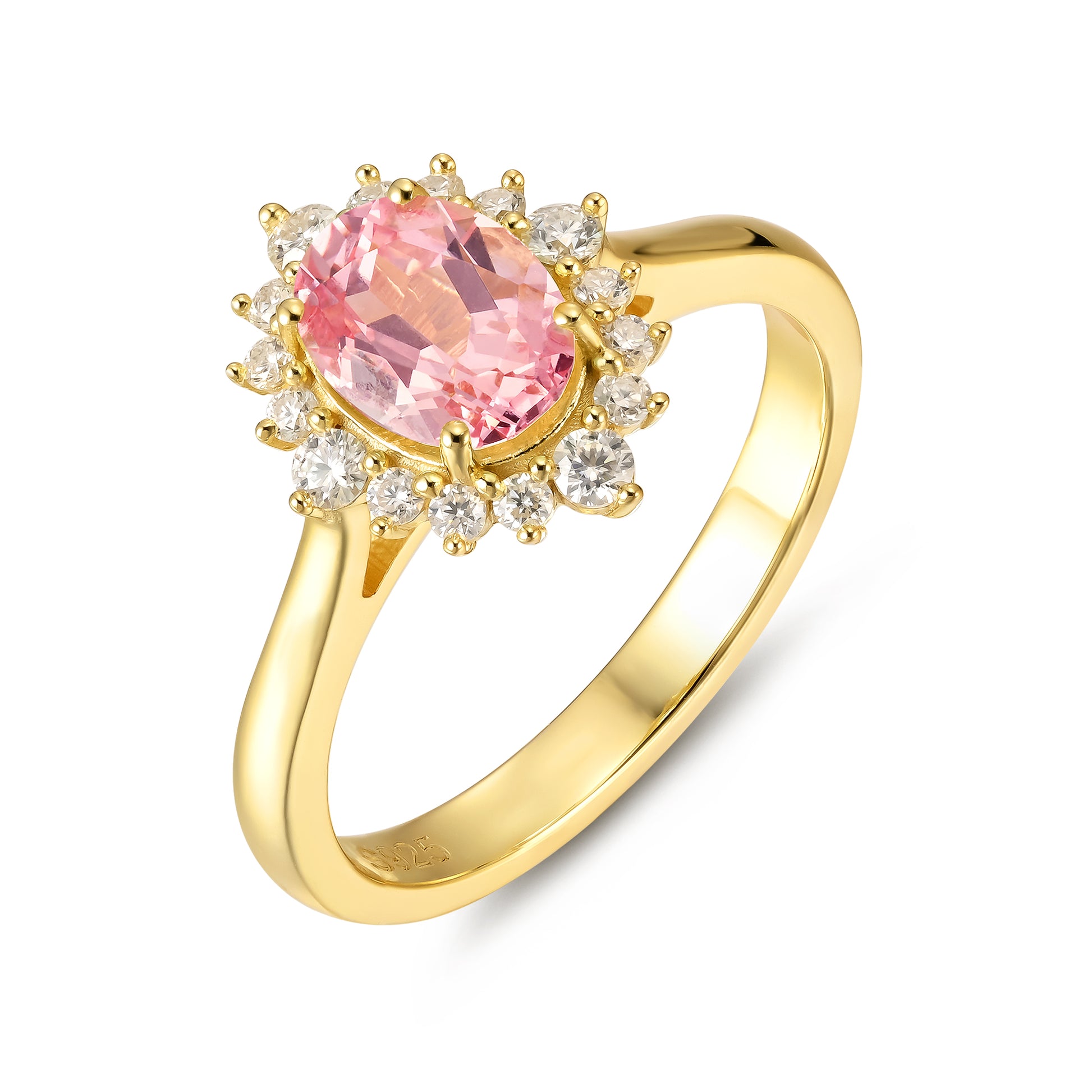 Pink Sapphire Flower With Moissanite 925 Sterling Silver Ring