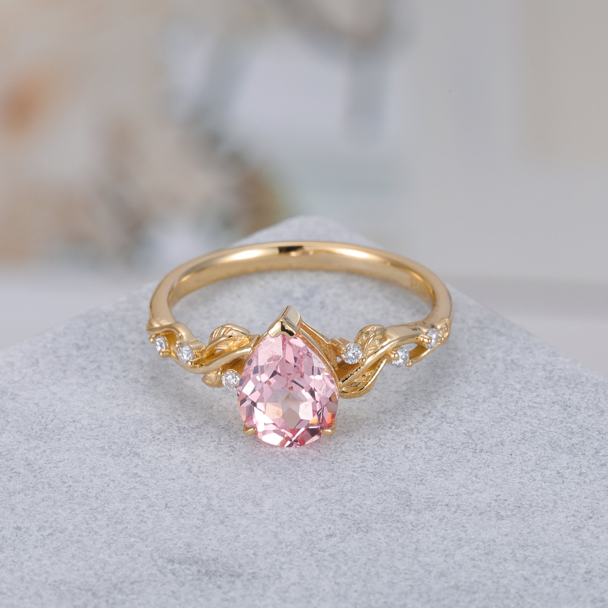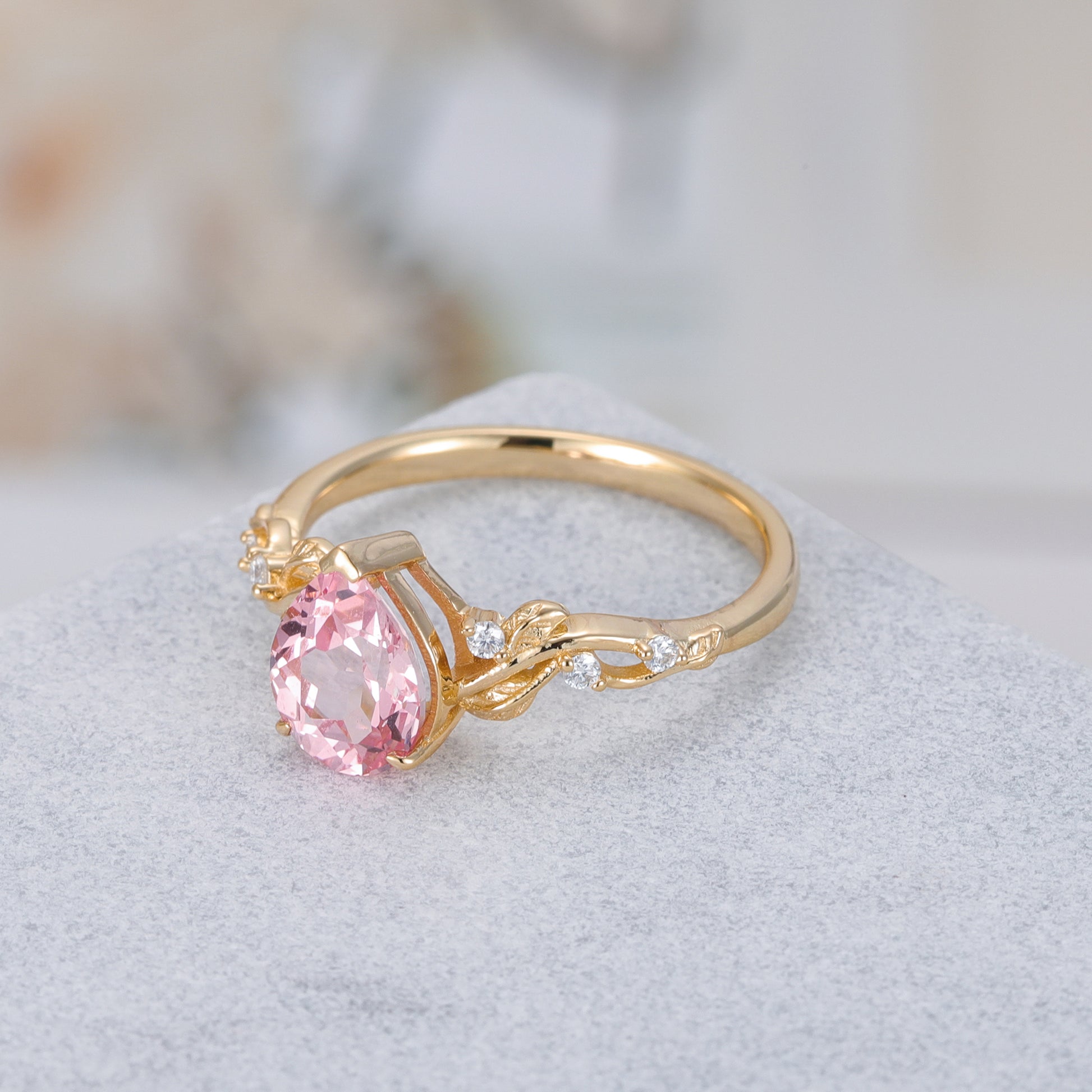 Pink Sapphire Pear With Moissanite 925 Sterling Silver Ring